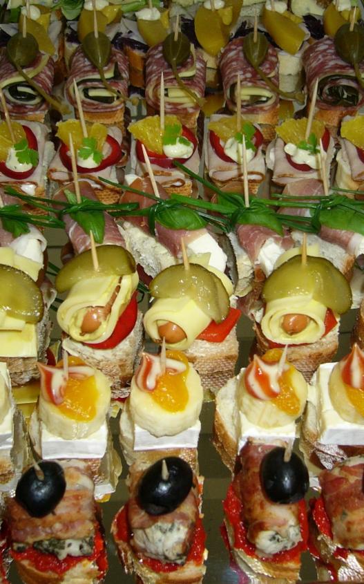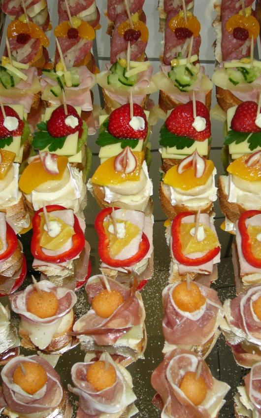 Baguette mit unterschiedlichsten Belägen und appetitlich dekoriert